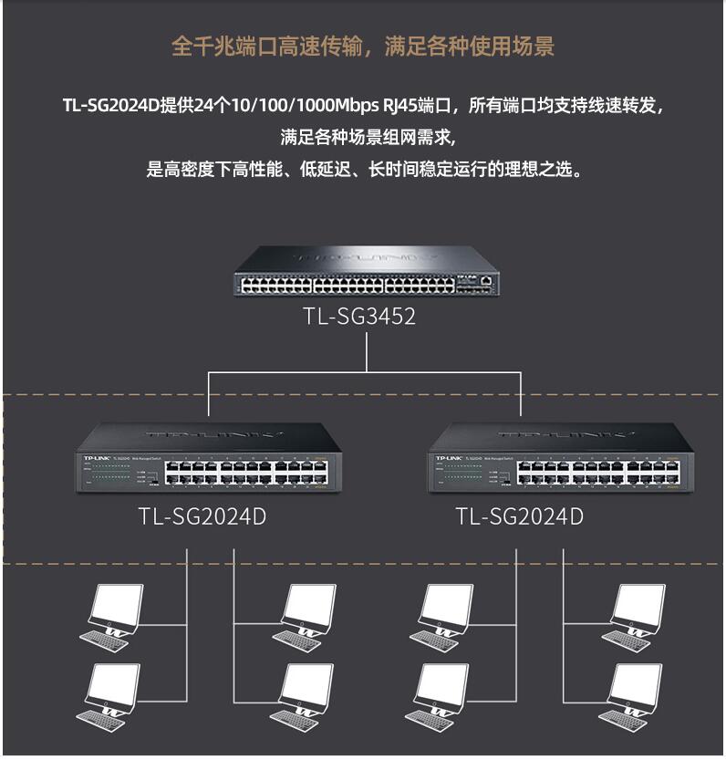 tplink24口千兆交換機(jī)16口48口百兆監(jiān)控專用網(wǎng)絡(luò)無(wú)線網(wǎng)線分流轉(zhuǎn)換交換器以太網(wǎng)企業(yè)web網(wǎng)管級(jí)VLAN匯聚SG2024D