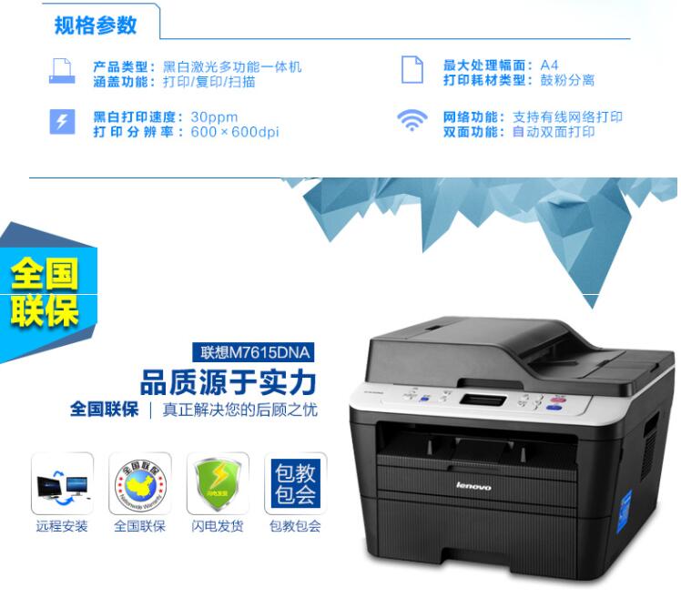 聯(lián)想M7615DNA/M7625DWA網(wǎng)絡(luò)雙面打印自動連續(xù)復(fù)印掃描激光一體機